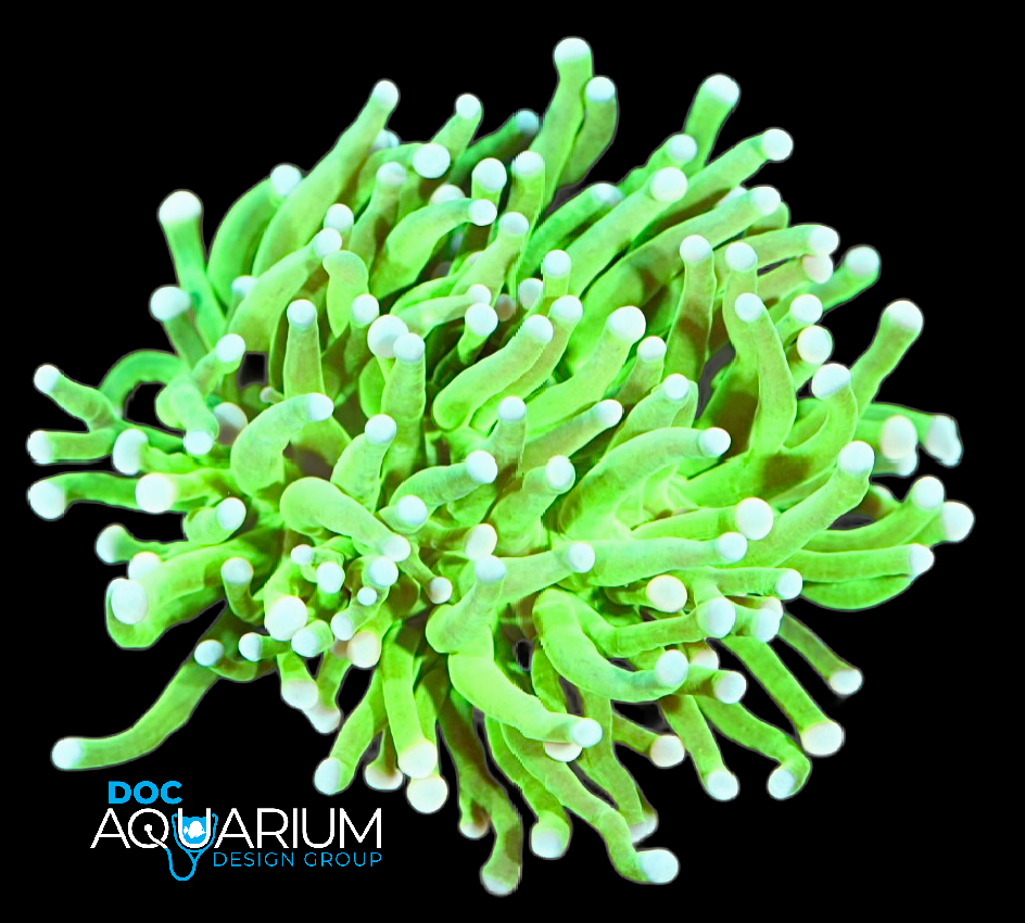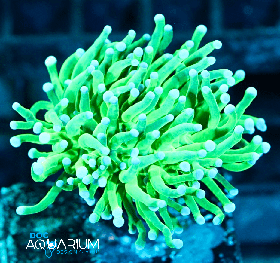 We have been growing this coral from a single polyp fragment since 2017. It has very nice flowy long bright green tentacles with a light blue tip. A must have for all torch coral collectors. Depending on the lighting, coral tentacles can very in color from pink, shades of orange and blue.