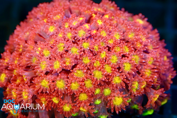 The red and yellow contrast gives Fruit Loops micro goniopora ultra vibrant, amazing colors. We like adding this coral into any custom reef aquarium to provide the reef good movement. Not to mention this coral has great growth rates.
