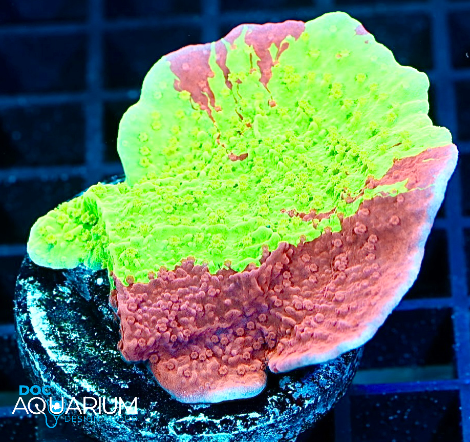Similar to the familiar original “grafted montipora” but this one has a brighter green much like the green monti cap. We like to mix a few of the different Montipora capricornis varieties together to get a wild looking garden. Watch them grow out in your reef aquarium, as they scroll around each other, forming a collage in their own unique way.