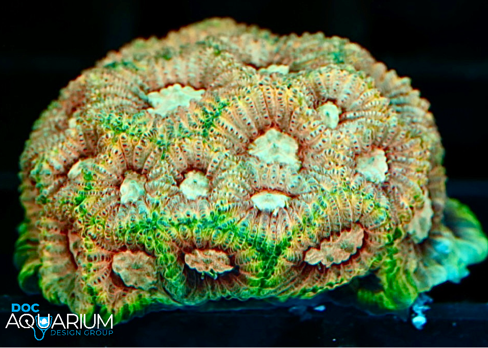 Placement recommendations: There are a few good areas to place these corals. Try an area like and edge in front so the coral can encrust onto the reef. Keep a safe distance from other corals so it does not harm or get harmed by other corals. This coral is good to grow in vertical areas where others cannot. Another great location is on an island on the sand up close to the glass for optimal viewing. It will never grow outwards into the glass. This is a must have coral in all the Doc Aquarium custom coral reef tank builds.
